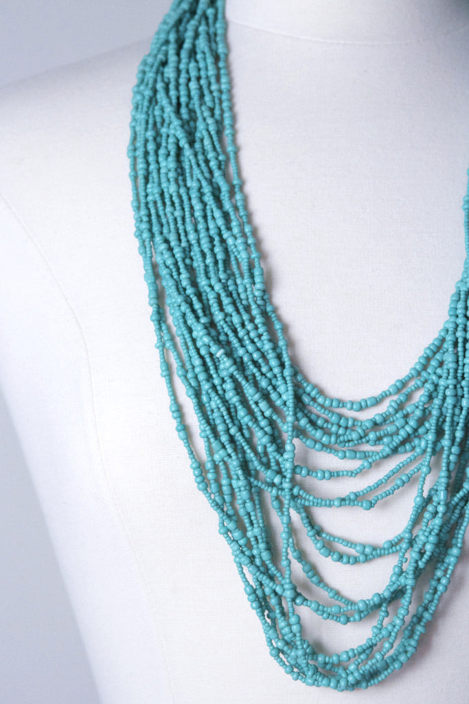Lite Turquoise Seed Beads in 10 Strands Cascading Necklace