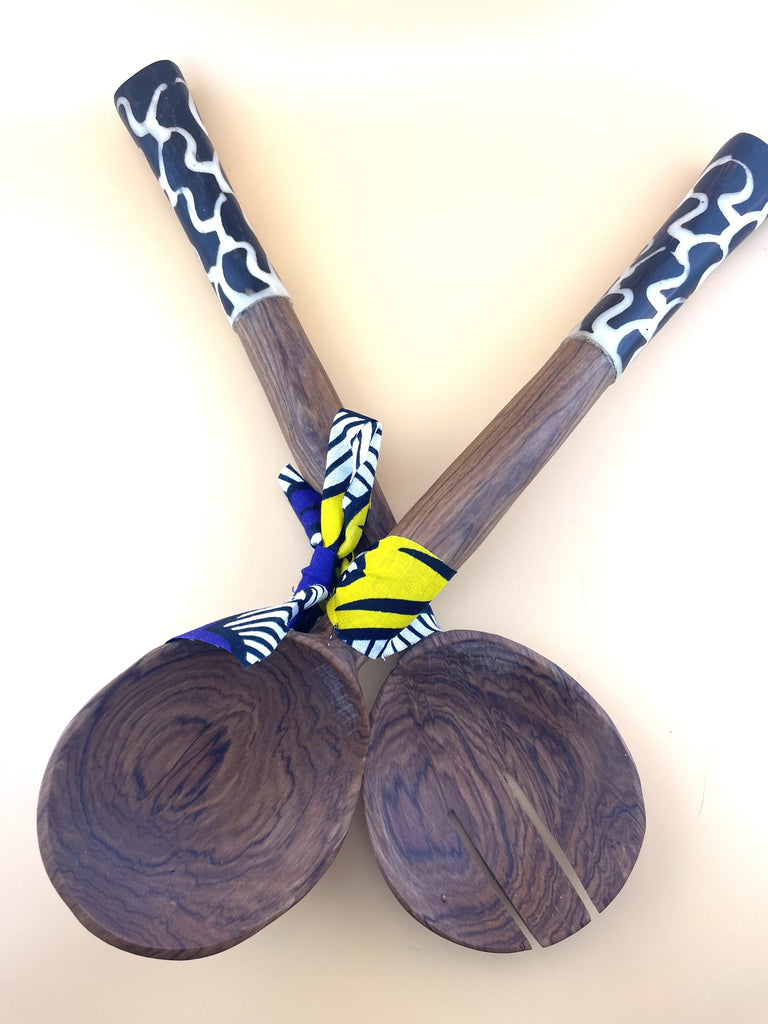 Hand-carved Olive Wood Spoon Set with Bone Inlay Handles. Carved by the Maasai Tribe for their sustainability in our Market Collection.